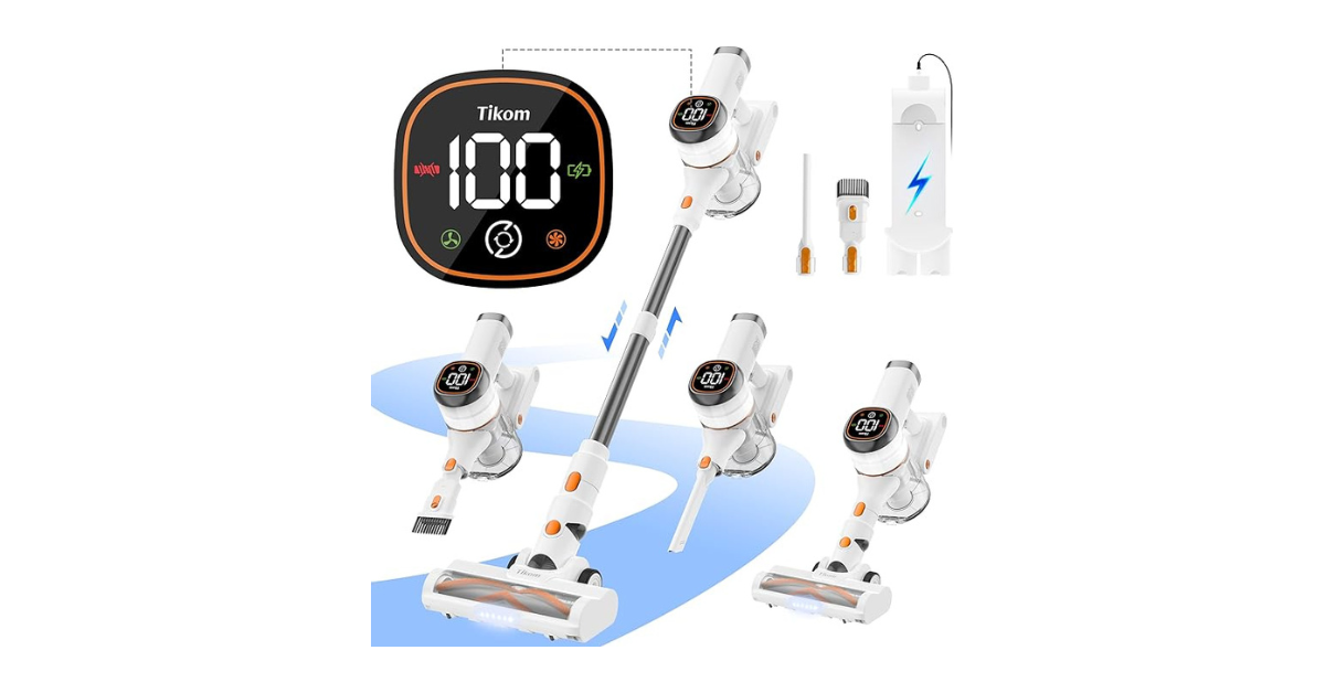 The Tikom V500 Cordless Stick Vacuum is built for powerful, flexible, and modern cleaning. It features a strong motor that quickly removes dirt, hair, and dust from carpets and floors.