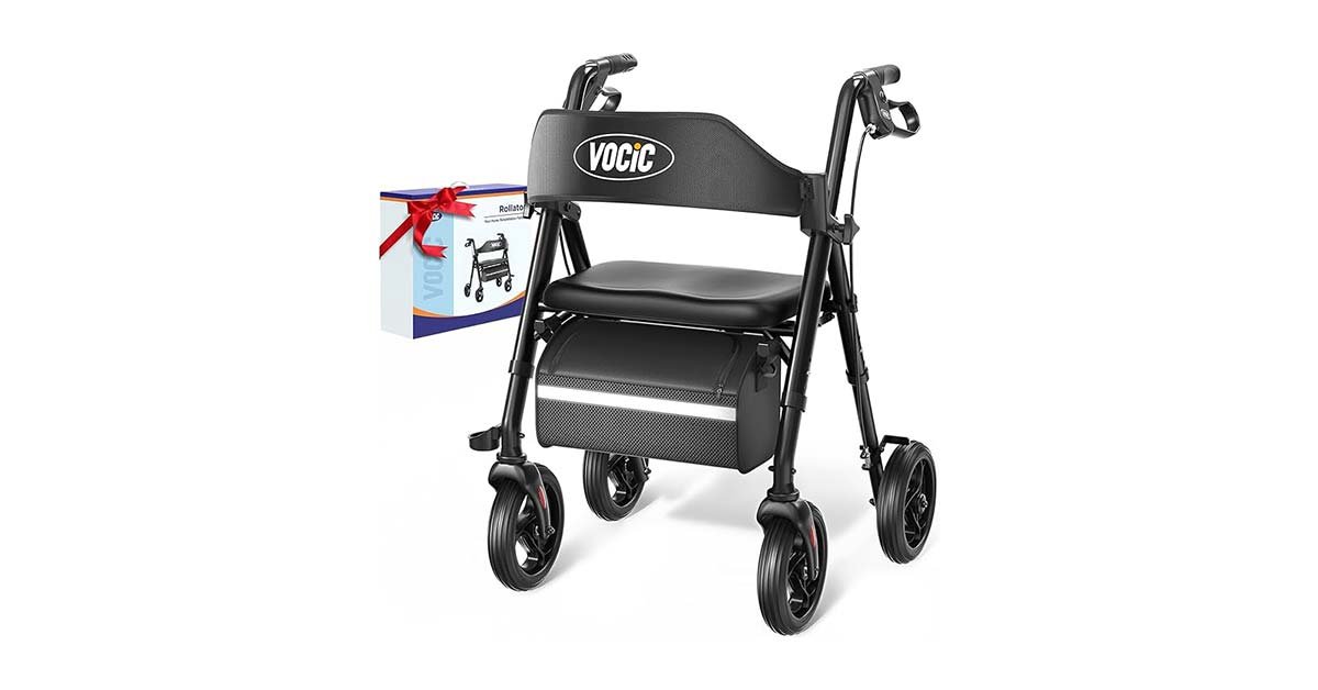 This VOCIC rollator walker is a perfect walking companion for seniors or anyone needing extra support. It has a sturdy yet lightweight frame that makes walking safer and easier.